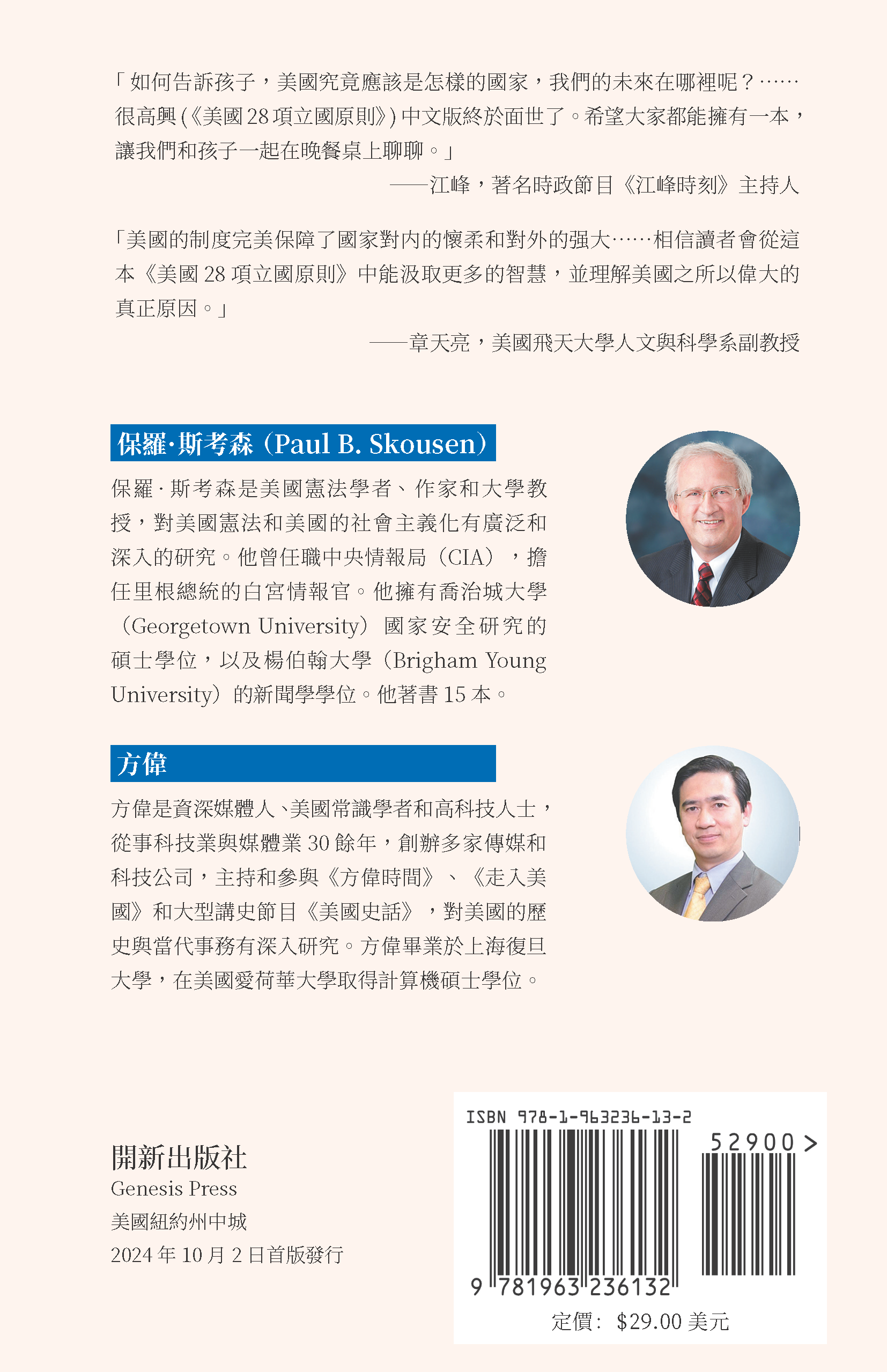 「美國的制度完美保障了國家對内的懷柔和對外的强大……相信讀者會從這本《美國28 項立國原則》中能汲取更多的智慧,並理解美國之所以偉大的真正原因。」