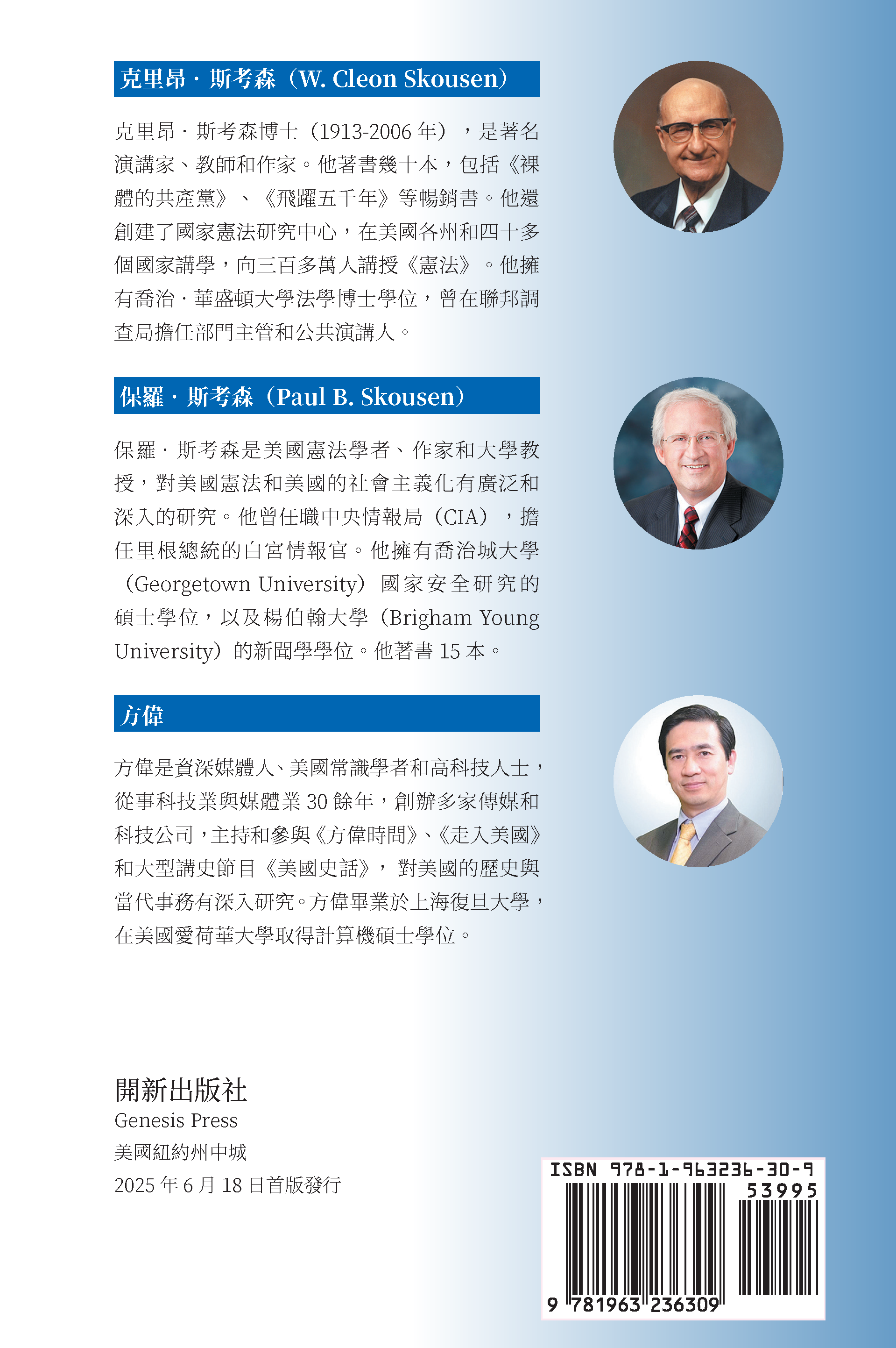克里昂‧斯考森(Cleon Skousen)博士(1913-2006年),是著名演講家、教師和作家。他著書幾十本,包括《裸體的共產黨》、《飛躍五千年》等暢銷書。他還創建了國家憲法研究中心,在美國各州和四十多個國家講學,向三百多萬人講授《憲法》。他擁有喬治‧華盛頓大學法學博士學位,曾在聯邦調查局擔任部門主管和公共演講人。